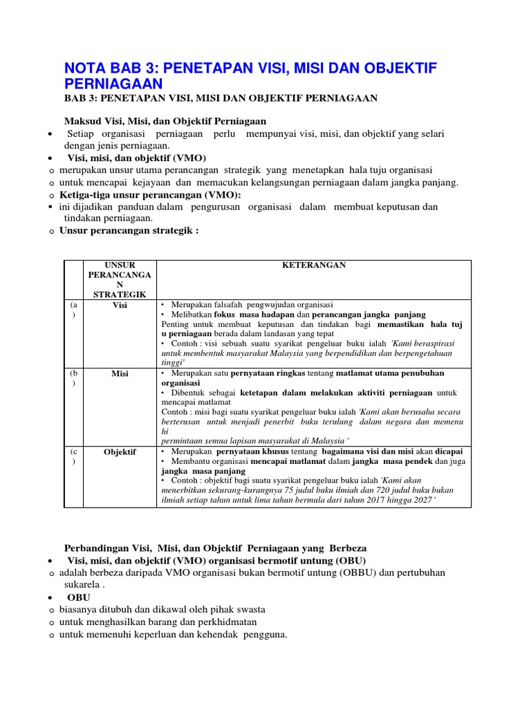 Bab 3 Penetapan Visi Misi Dan Objektif Perniagaan Membalik Buku Halaman 1 50 Anyflip